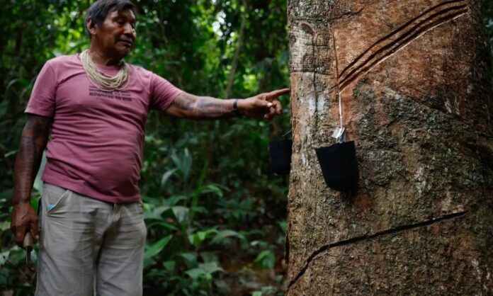 Dessa forma, eles pretendem que os territórios indígenas voltem a fornecer a matéria-prima à empresa francesa Michelin, uma das maiores fabricantes de pneus do mundo, que realiza compras de borracha na Amazônia.